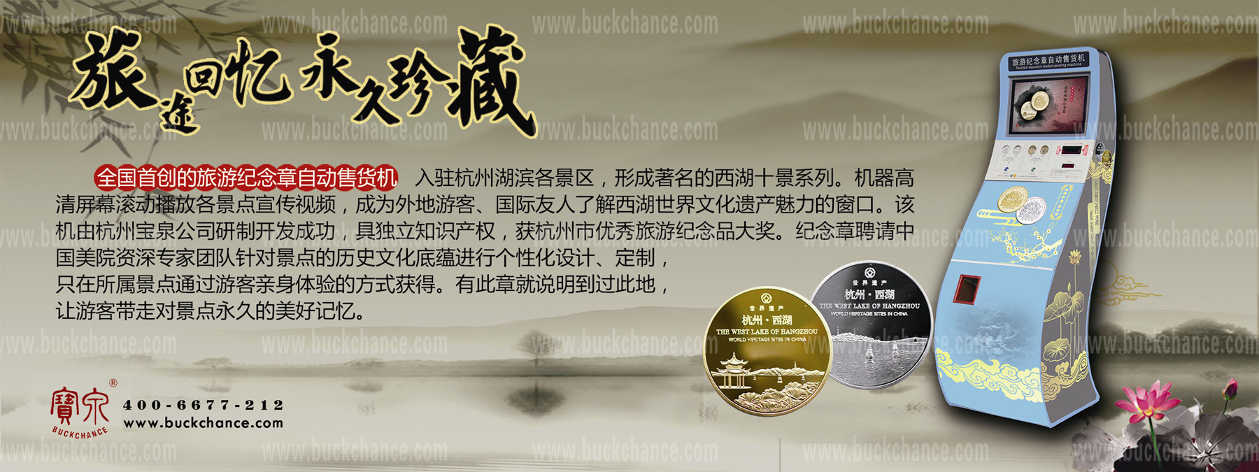 杭州寶泉(www_buckchance_com.hrs-corporate.cn )成立于2011年,國內領先的旅游文創產品定制開發單位,專注于景區專屬文創紀念品的設計定制和配套智能選購設備的開發運營。公司秉承“模式創新+產品創新”的雙創新理念,發展迅速。通過新穎的“尋寶圖”人機互動方式串聯同區域內各大景點。現已入駐杭州西湖、蘇州園林、嵩山少林寺、紹興魯迅故里、鎮江金山、嘉興南湖革命紀念館、廣州小蠻腰塔、南潯古鎮、東岳泰山、西岳華山等數百家景點和中國國際動漫節、西博會、上海China Joy 等知名展會。